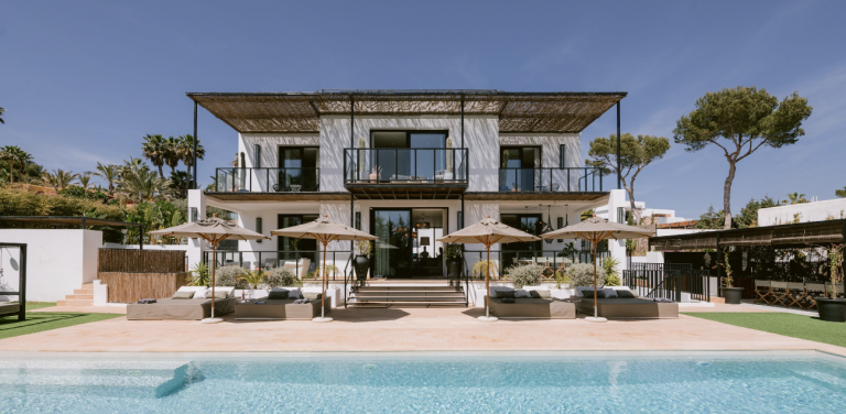 Tijdens het retreat verblijven we met een groep van 12 vrouwen in een luxe en stijlvol ingerichte villa in een rustig gedeelte van Ibiza. De villa heeft uitzicht op Es Vedra en je loopt zo naar het strand van Cala Codolar.